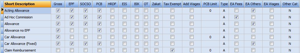Actpay can handle up to 15 custom allowances. Each of these allowances can be customised to handle specific Statutory deductions. The allowances can be programmed to calculate or ignore EPF, SOCSO, PCB and EIS individually. Although 90% of allowances are subject to EPF, SOCSO and PCB, there are quite a number of allowances that do not attract all or some of these Statutory deductions. In Actpay these allowances can be set independently to achieve the required results.