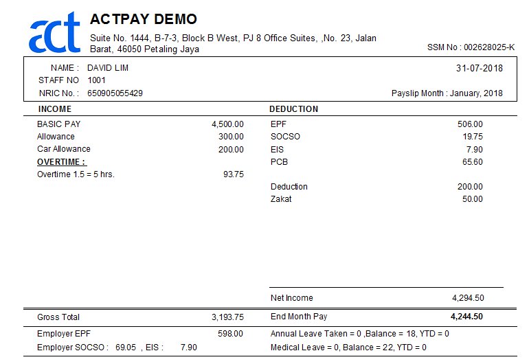 Actpay payroll system is written for Malaysian small businesses. Actpays extensive features simplify and speed up monthly payroll calculations, submissions and reporting processes.